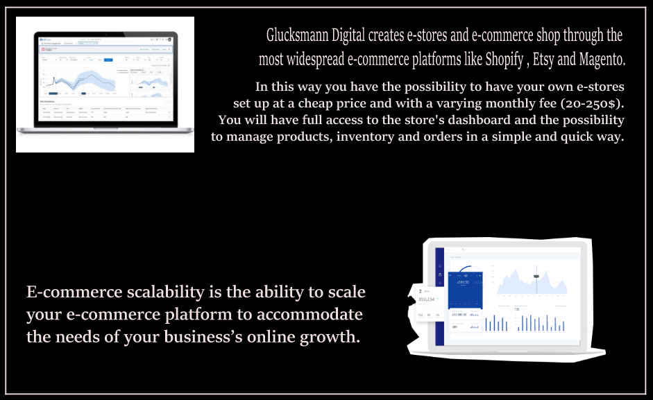 e-commerce platforms such as Shopify, Magento and WooCommerce for the creation of online stores , issuing the client with login credentials